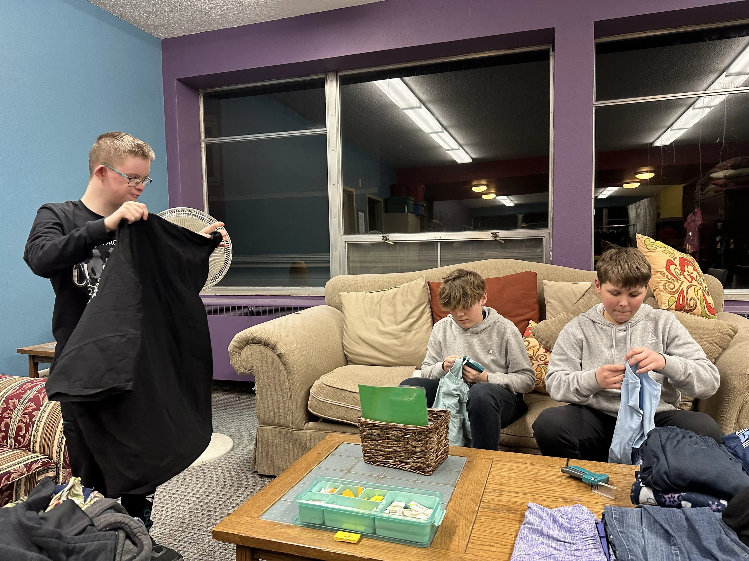 Helping with TEEN APPROVING (selecting teen styled clothing from the donations)